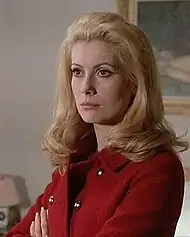 Much of Deneuve's wardrobe was designed by Yves St. Laurent.