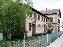 The former entrance building was built around 1870 as a so-called "standard building" in brick. It was built in the period when the station was opened and is under heritage protection.[15] It is no longer used for railway operations.