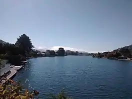 There used to be a natural passage between the lagoon and the San Francisco Bay through the southern spit.[2] The passage was spanned by a drawbridge.[3][2] From the late 19th century, the drawbridge would be raised twice a year, once in the spring to allow pleasure boats of the Corinthian Yacht Club to exit the lagoon, where the boats wintered, and go to their summer moorings, and once in the fall, to allow the boats to return.[4] This raising of the drawbridge signaled the beginning of the pleasure boat season.[3][5] In 1917, that informal celebration morphed into a more formal and elaborate parade of boats that has now evolved into the Opening Day on the Bay involving the 104 clubs of the Pacific Inter-Club Yacht Association.[5]