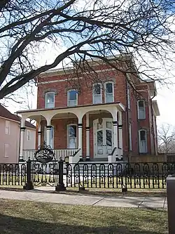 It was built in about 1876, and is a two-story, three-bay wide, Italianate-style brick dwelling. It features a low hipped roof topped by a cupola with cast iron cresting, full-width front porch, and two-story projecting bay window.[2]: 3, 7
