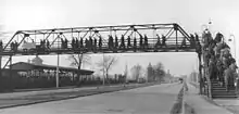 Platform and pedestrian bridge over the Adlergestell in March 1957.
