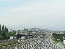 Berlin Bornholmer Straße (German: Bahnhof Bornholmer Straße) is a railway station in the Prenzlauer Berg district of Berlin, Germany. It is served by the Berlin S-Bahn and the M13 and 50 lines of the Berlin Straßenbahn.