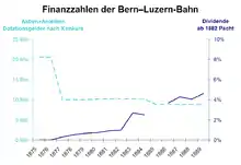 The main shareholders of the Bern-Lucerne Railway were the Canton of Bern and the Canton of Lucerne as well as some municipalities. However, many Emmental municipalities and the City of Bern showed little enthusiasm for subscribing for shares because they had already lost a significant amount of money in the failed Swiss East–West Railway (Ostwestbahn, OWB). Nevertheless, at the end of 1872, the Bern-Lucerne Railway had accumulated over CHF 14 million in the form of stocks and bonds, while construction costs were estimated at CHF 13.7 million.