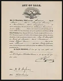 - ↑ Digital Collections, Northwestern University Libraries (July 26, 2022). "Bills of sale of Thomas, an enslaved man sold for $1,150 from enslaver Bernard Kendig to Jno H. Randolph, New Orleans". Northwestern University Libraries, Charles Deering McCormick Library of Special Collections. Retrieved 2023-09-20.