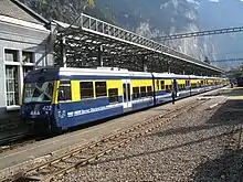 The Bernese Oberland Railway (German: Berner Oberland-Bahn, BOB) is a narrow-gauge mountain railway in the Bernese Oberland region of Switzerland. It runs, via a "Y" junction at Zweilütschinen to serve Lauterbrunnen and Grindelwald from Interlaken. The railway is rack assisted (that is although an adhesion railway, rack and pinion operation is used on steep sections of the line to assist traction).[1]