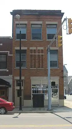 It was built in 1905, and is a three-story, Commercial style brick building. A small two-story, rear addition was constructed prior to 1917. The building originally housed office space for several doctors. It is located next to the Commercial Building.[2]: 21 It is significant as one of the oldest commercial buildings in South Bend.