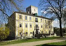 Bertha Kinský was born on 9 June 1843 at Kinský Palace in the Obecní dvůr (cz) district of Prague.[4] Her parents were the Austrian Lieutenant general (German: Feldmarschall-Leutnant) Franz Michael de Paula Josef Graf Kinsky von Wchinitz und Tettau (1769–1843), then recently deceased at the age of 75, and his young wife Sophie Wilhelmine von Körner (1815–1884), who was almost fifty years his junior.[5][6]