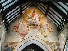 The clear-glass windows help to illuminate the church's unique murals. Partly inspired by the pre-Reformation practice of decorating churches with murals, these were painted in 1941 by Duncan Grant, Vanessa Bell, and Quentin Bell, of the Bloomsbury Group. The murals depict local people, sometimes in period clothes, but set in biblical scenes.