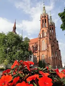 The Cathedral Basilica of the Assumption of the Blessed Virgin Mary [1] (Polish: Bazylika archikatedralna Wniebowzięcia Najświętszej Maryi Panny w Białymstoku) also called Białystok Cathedral[2] is a Roman Catholic cathedral in the city of Bialystok in Poland.[3] It was designed by architect Józef Pius Dziekoński. The three-nave church is 90 meters long and can accommodate 9,500 worshipers. The two towers reach 72.5 meters high. It is the main church of the Archdiocese of Bialystok and acquired the status of basílica in 1985 by decision of Pope John Paul II.