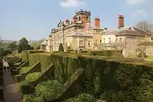 Biddulph Grange "started life as a bog-standard rectory, but around 1840 it was bought by James Bateman...he and his wife Maria had a passion for plants and the money to indulge their interests, and as the house was enlarged they began work on the surrounding gardens. In this they were helped by an artist friend, Edward William Cooke, who was not just a keen designer but whose father-in-law owned one of the biggest plant nurseries of the day, Loddiges of Hackney."[1] The gardens "were designed by James and Maria Bateman. Bateman...bought specimens brought back by the great Victorian plant-hunters and became an expert on orchids."[2]