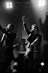 In 2011, McCoy and Mars performed "Billionaire" on their European co-headlining tour; McCoy sang it during his headlining leg in North America.[75] That same year, it was also sung during the Vans Warped Tour, where McCoy's band, Gym Class Heroes, were the headline act.[76] On Mars's debut international tour (2010–12) and the Hooligans in Wondaland Tour (2011), he performed a rock cover of "Money (That's What I Want)" (1959) by Barrett Strong. This served as an interlude before "Billionaire".[77][78][79] During his second tour, The Moonshine Jungle Tour (2013–14), and on his debut concert residency, Bruno Mars at The Chelsea, Las Vegas (2013–15), Mars sung a cover of "Money (That's What I Want)" with "Billionaire" and Aloe Blacc's "I Need a Dollar" (2010).[80][81][82] "Billionaire" was used as the introduction to Mars's performance on the Super Bowl XLVIII halftime show in 2014, sung by a children's choir.[83] It was included on several shows of the South American leg during Mars's third world tour, the 24K Magic World Tour (2017–2018).[84]