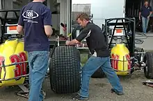 ![]() Billy Boat (right) preparing tires for his son Chad's sprint car in 2007 | |||||||