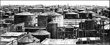 By 1874 there were 123 refineries in what would become known as "Black City".[4] The refinery district was about 8 miles (13 km) from the shipping ports.[5] An industrial area plan was completed in 1876. Some of the farms and pastures of the neighbouring village of Keshla were zoned to accommodate replacements for factories that had been dismantled in the city. The new industrial zone was 2 kilometres (1.2 mi) from residential areas. To prevent further pollution, the new zoning law prohibited oil refineries from being built within the residential area.[3] By 1880, there were 118 industrial businesses functioning in the Black City area.[3]