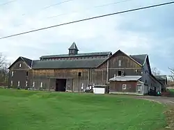 Black and White Farm Barn is a historic barn located near Sonyea in Livingston County, New York. It is a large two story wood-frame building built in 1884 on a 600-acre (2.4 km2) farm. The barn is rectangular in plan and measures 160 feet (49 m) in length and 200 feet (61 m) in depth. It features a central courtyard which measures approximately 80 feet (24 m) in length and 120 feet (37 m) in depth.[2]