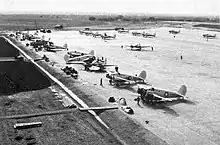 In October 1942 the Army Air Force Pilot School (Advanced Twin-Engine) was activated (phase 3 pilot training). On 8 January 1943, the War Department constituted and activated the 33d Flying Training Wing (Advanced Twin-Engine) at Blackland and assigned it to the AAF Central Flying Training Command. The school used a number of two-engine trainers, including the Cessna AT-17 Bobcat, Curtiss-Wright AT-9, Beechcraft AT-10 Wichita, and TB-25 Mitchell.[5]