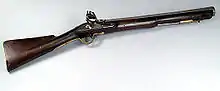 While the blunderbuss is often associated with the Plymouth Colony Pilgrims of 1620,[15] evidence suggests that the blunderbuss was relatively scarce in the American colonies. After the Battle of Lexington in 1775, British General Thomas Gage occupied Boston, Massachusetts, and upon negotiating with the town committee, Gage agreed to let the inhabitants of Boston leave town with their families and effects if they surrendered all arms. While most of the residents of Boston stayed, those who left under the agreement surrendered 1,778 long arms, 634 pistols, 273 bayonets, and only 38 blunderbusses.[16] The blunderbuss did still have its civilian applications, however; the Lewis and Clark Expedition carried a number of blunderbusses, some of which were mounted and used as small swivel guns on the pirogues.[6]