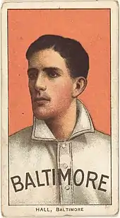 Robert Prill Hall (December 20, 1878 – December 1, 1950), was a professional baseball player who played infield and outfield during the 1904 and 1905 seasons. He was a utility player including games at right field, Center field, left field, first base, second base, shortstop, and third base. Bob played for the Philadelphia Phillies in 1904, and the New York Giants and Brooklyn Superbas in 1905. Hall made his debut on April 18, 1904. In 103 career games, he had 75 hits in 369 at bats, which is a .203 average. He had 2 home runs, 32 RBIs, and 13 stolen bases. Hall played in his final game on October 7, 1905, and died on December 1, 1950, in Wellesley, Massachusetts.