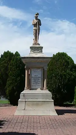 The Helidon sandstone Boer Memorial comprises a pedestal surmounted by a digger statue.[2]