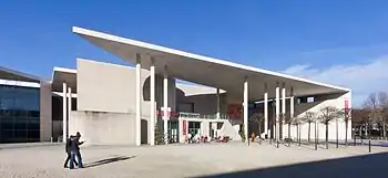 The present building, which opened in 1992,[2] was created by the BJSS firm (Axel Schultes) and Jürgen Pleuser at a cost of about DM-100 million. It has three entrances, symbolising openness. The design of the staircase has been described as a "precise geometry, cut like jewellery. The conception of light brings the collection to life."[3] The total exhibition area is around 4,000 square metres (43,000 sq ft).[4]