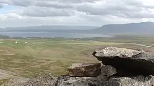 Borgarvirki is a volcanic plug (gosstapi [ˈkɔsːˌtʰaːpɪ]), and the Icelandic sagas mention that in earlier centuries it was used for military purposes.[1] There is a viewing dial inside.