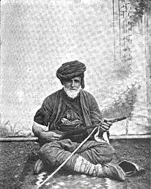 Bosniak epic poetry, just like the epic poetry of other Southern Slavs, was accompanied by the Gusle (Lahuta in Albanian). Kosta Hörmann mentions in his collections of epics from the territory of Bosnia and Herzegovina during Austro-Hungarian times that he "recognized joy when his Muslim hosts got lost in Gusle made from maple, after which a sonorous howl came from the singer's ringing throat. Songs about heroism and good horses".[22] Milman Parry and Albert Lord also recorded many epic songs that were accompanied by the Gusle in their journeys through Bosnia, Herzegovina, and Montenegro.[23]