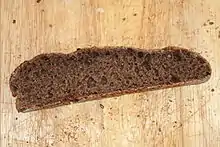 New England or Boston brown bread is a type of dark, slightly sweet steamed bread, usually sweetened with molasses, popular in New England. The moist bread is dark in colour and traditionally served with baked beans and franks.[10]