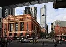 Parliament railway station is located at the eastern end of Bourke Street near the corner of Spring Street and is part of the underground City Loop for the suburban rail network.
