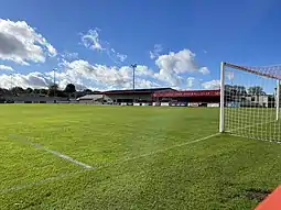 The club played at Manor Road from their establishment until 1968, when they moved to Buckingham Road, where the players changed in the nearby Plough pub.[8] In 1974 they moved to St. James Park on Churchill Way. Floodlights were installed during the 1988–89 season.[8] During their first spell in the Southern League a 300-seat stand was built on one touchline.[8] The ground currently has a capacity of 3,500, of which 300 is seated and 1,500 covered.[9]
