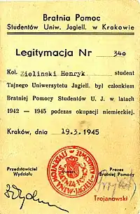 During the Second World War, under the Nazi German occupation, Bratniak branches functioned at the illegal, underground Polish universities.