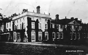 Brayton Hall is a ruined former mansion in Cumbria, England. Once the ancestral seat of the Lawson family, it stood in a large park, with views of the surrounding countryside and the mountains of the Lake District in the background. Located 1.5 miles east by north of the town of Aspatria, and 7 miles south west by west of the market town of Wigton, it was greatly enlarged and rebuilt in 1868. Brayton Hall was practically destroyed by fire in 1918.[1]