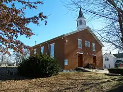 The history of the church begins with English and Scots-Irish Presbyterian settlers from Rowan, Iredell, Cabarrus, and Mecklenburg counties in North Carolina, and they settled Brazeau in 1817.[1] The church was established in 1819 by David Tenney and had 20 members,[2] with services held in a small log cabin. In 1833, after a fire destroyed the log cabin church, a new frame church was built to replace the previous church. In 1851, a new brick church was planned and, after several difficulties, was completed in 1854. The church had two entry doors equally spaced on the front - one for women, and one for men; on the inside, there are two pairs of stairs, 4 feet wide, going up to the gallery. The church is topped by a six-sided belfry. There were three window bays on each side of the church. The first parsonage was constructed in 1857, the second one in 1906. In 1964, the church merged with two other denominations to become the United Christian Cooperative Parish. P.O. 1879-date.[3] Membership peaked at around 200 in the 1880s, but dissension caused a reorganization in 1890 which resulted in only 60 members remaining. However, by 1894 its membership had risen to 100 members [4][5]