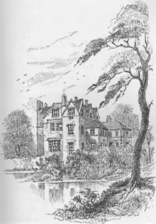 A line drawing of Breadsall Priory, by Francis S. Darwin's daughter Violetta H. Darwin (1826–1880)