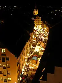 Bremgarten is famous for its four large markets, which attract tens of thousands of visitors and are important for tourism. The Easter Market on Easter Monday (including an agricultural machinery market) and the Whitsun Market on Whit Monday have a tradition of more than 750 years. The Old Town Market is held over two days at the end of October and focuses on arts and crafts. Since 1995, the Christchindlimärt has been held over four days in early December. With over 100,000 visitors and more than 300 stalls, it is now the largest Christmas market in Switzerland and has gained international renown. There are also weekly markets every Wednesday and Saturday from March to November.[20]