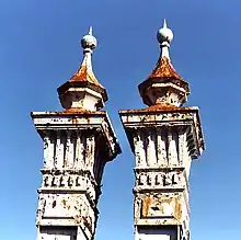 Early in the summer of 2011, WTOV-TV in Steubenville reported that the bridge was to be demolished, with demolition tentatively scheduled to start at the end of July 2011.[3] They reported that the West Virginia Division of Highways received a request from the U.S. Coast Guard to bring the bridge down as it was a safety hazard and pieces had fallen into the river. It also verified that many of the unique features of the bridge, such as the railings, signage, the finials on top, and plaques would be removed prior to demolition. The bridge demolition was expected to take 60 days and cost $750,000.00, which was considerably less than a $1.2 million estimate for demolition costs that had been given in 2000.