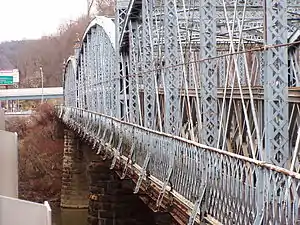 - ↑ Betty J. Pokas (September 12, 2011). "Long-Standing Bridgeport Bridge Razed Today". Wheeling News-Register. Archived from the original on December 9, 2011. Retrieved September 14, 2011.