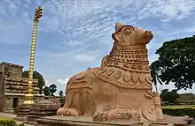 There is an image of a seated Nandi bull in the courtyard, aligned axially 200 m (660 ft) facing the sanctum.[20] There are five shrines around the sanctum and a Lion well, which was added during the 19th century. The temple site has a monolithic representation of Navagrahas, the nine planetary deities.[19]