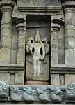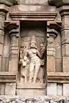 There are about fifty sculptural reliefs around the walls of the sanctum, three of which — Nataraja, Saraswati and Shiva garlanding a devotee — being the most prominent. There is a shrine for Shaiva saint and scholar Chandeshvara (one of the sixty-three Nayanars). There are other niches around the temple walls depicting various forms of Shiva, Durga and Vishnu. There are many bronze statues in the temple depicting Chola art of the 11th century, with the one of Kartikeya being the most recognisable.[27]