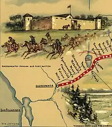 Western portion of Pony Express route, including Sacramento, Placerville and Carson City