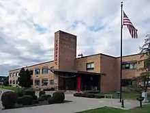 District #5 was originally serviced by the McKinley School, located on New York State Route 7 (Hoosick Road), east of New York State Route 142 (Grange Road), and west of Town Office Road.[17] The building was built around 1872 and the building still stands, housing a local business. The replacement schoolhouse, known as the Lee School, was located at Keyes Lane and Merrill Avenue.[18] It was constructed in 1953 but soon closed due to centralization. It was then sold to the Brunswick Center Fire Department and used as a banquet hall until it was demolished in 1997 to be replaced by a new town community center.