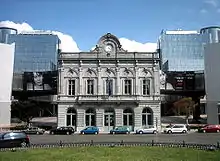 The station was built between 1854 and 1855 by the Grande Compagnie de Luxembourg, as part of the Brussels-Luxembourg railway line it was constructing.[1] It was to service the new Leopold Quarter, hence its original name of Leopold Quarter railway station (French: Gare du Quartier Léopold, Dutch: Station Leopoldswijk). The lead architect was Gustave Saintenoy, who designed it in a neoclassical style, in keeping with the other buildings around the Place du Luxembourg/Luxemburgplein, which were built around the same time.