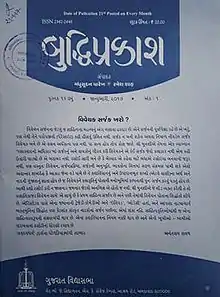 Buddhiprakash was established in 1850[1] as a lithotype fortnightly. The first issue of the magazine was published on 15 May 1850 from Ahmedabad. It had 16 pages with articles on 26 subjects ranging from science and technology to philosophy. It cost 1.5 Anna to readers per issue then. After one and a half years of publication, it was closed.[2][3][4]