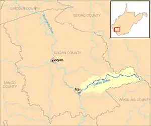 ![]() Buffalo Creek and its watershed in Logan County, West Virginia | |