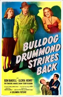 Bulldog Drummond Strikes Back is a 1947 American adventure crime mystery film directed by Frank McDonald and starring Ron Randell, Gloria Henry and Patrick O'Moore. The film is loosely based on the H. C. McNeile novel Knock-Out.[1][2][3][4]