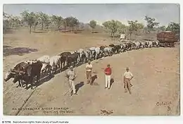 Bullock teams were used extensively to transport produce from rural areas to major towns and ports. Because of Australia's size, these journeys often covered large distances and could take many days and even weeks.