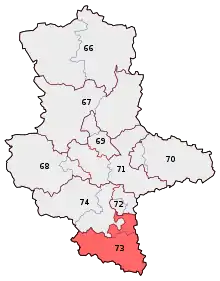 Burgenland – Saalekreis is an electoral constituency (German: Wahlkreis) represented in the Bundestag. It elects one member via first-past-the-post voting. Under the current constituency numbering system, it is designated as constituency 73. It is located in southern Saxony-Anhalt, comprising the Burgenlandkreis distinct and eastern parts of the Saalekreis district.[1]