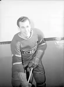 Joseph Émile Alcide Bouchard CM CQ (4 September 1919 – 14 April 2012) was a Canadian ice hockey player who played defence with the Montreal Canadiens in the National Hockey League from 1941 to 1956. He is a member of the Hockey Hall of Fame, won four Stanley Cups, was captain of the Canadiens for eight years and was voted to the NHL All-Star team four times. Although having a reputation as a clean player, he was also one of the strongest players and best body-checkers of his era. He excelled as a defensive defenceman, had superior passing skills and was known for his leadership and mentoring of younger players. In his early years in the NHL, Bouchard, among other players, made a major contribution to reinvigorating what was at the time an ailing Canadien franchise.[1][2][3]