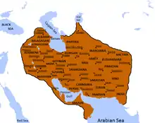 Upon the murder of Maurice, Narses, governor of the Byzantine province of Mesopotamia, rebelled against Phocas and seized Edessa, a major city of the province.[24] Emperor Phocas instructed general Germanus to besiege Edessa, prompting Narses to request help from the Persian king Khosrow II. Khosrow, who was only too willing to help avenge Maurice, his "friend and father-[in-law]", used Maurice's death as an excuse to attack the Byzantine Empire, trying to reconquer Armenia and Mesopotamia.[25][26]