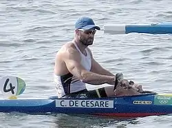 César Ernesto de Cesare (born 12 July 1980) is an Argentine-born Ecuadorian sprint canoeist. He won the K-1 200 m event at the 2011 Pan American Games and finished third in 2015; he also had a fourth-place finish at the 2013 World Championships. He placed 11th–12th at the 2012[4] and 2016 Olympics and served as the Olympic flag bearer for Ecuador in 2012.[3]