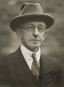 Clarence Michael James Stanislaus Dennis (7 September 1876 – 22 June 1938), better known as C. J. Dennis, was an Australian poet and journalist known for his best-selling verse novel The Songs of a Sentimental Bloke (1915).[1] Alongside his contemporaries and occasional collaborators Henry Lawson and Banjo Paterson, Dennis helped popularise Australian slang in literature, earning him the title 'the laureate of the larrikin'.