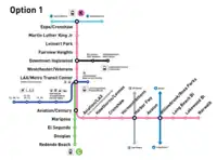 - ↑ "Crenshaw/LAX Line Operations Plan Being Debated, Will Affect Green Line". streetsblog.org. June 22, 2018. Archived from the original on June 8, 2019. Retrieved December 6, 2018.
